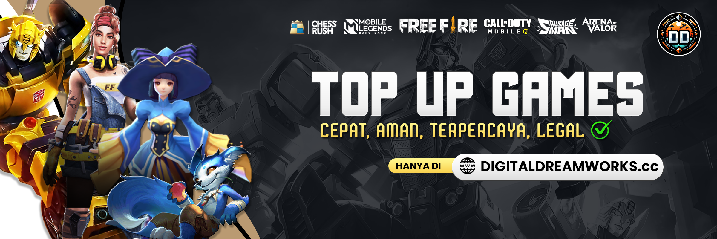 Digital Dreamworks adalah tempat top up games yang aman, murah dan terpercaya. Proses cepat 1-3 Detik. Open 24 jam. Payment terlengkap. Jika ada kendala silahkan klik logo CS pada kanan bawah di website ini.
